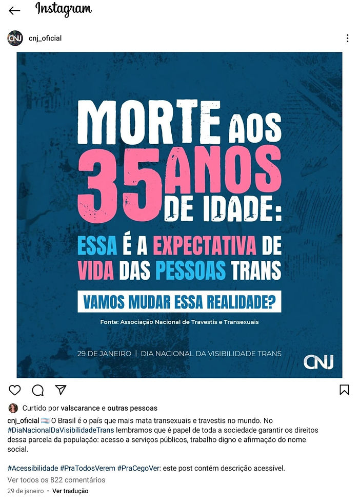 Na esteira do lançamento do Relatório Falsas afirmações sobre a população autodeclarada trans no Brasil, a MATRIA oficiou o Conselho Nacional de Justiça (CNJ) a respeito de publicação de Instagram na qual o órgão propaga informações falsas.