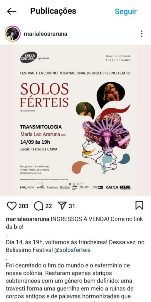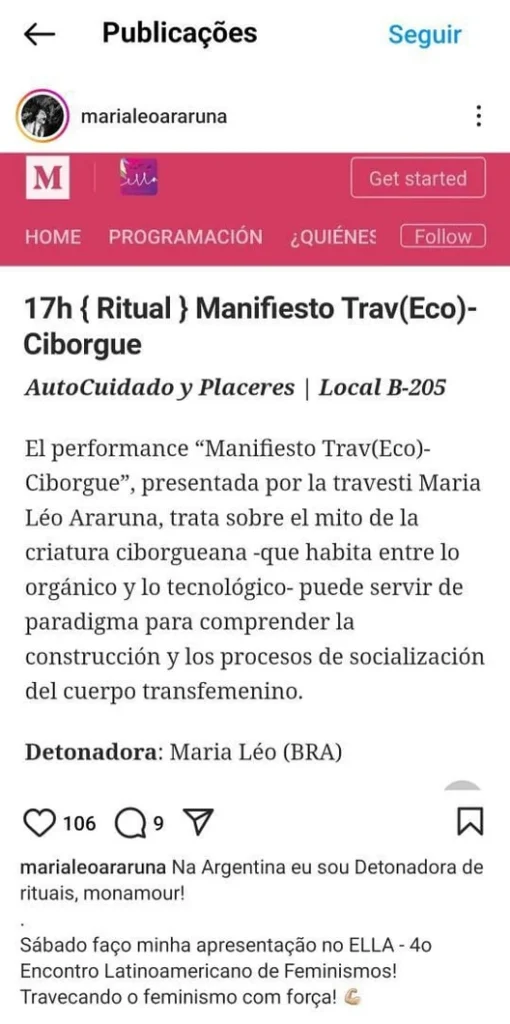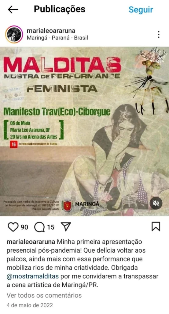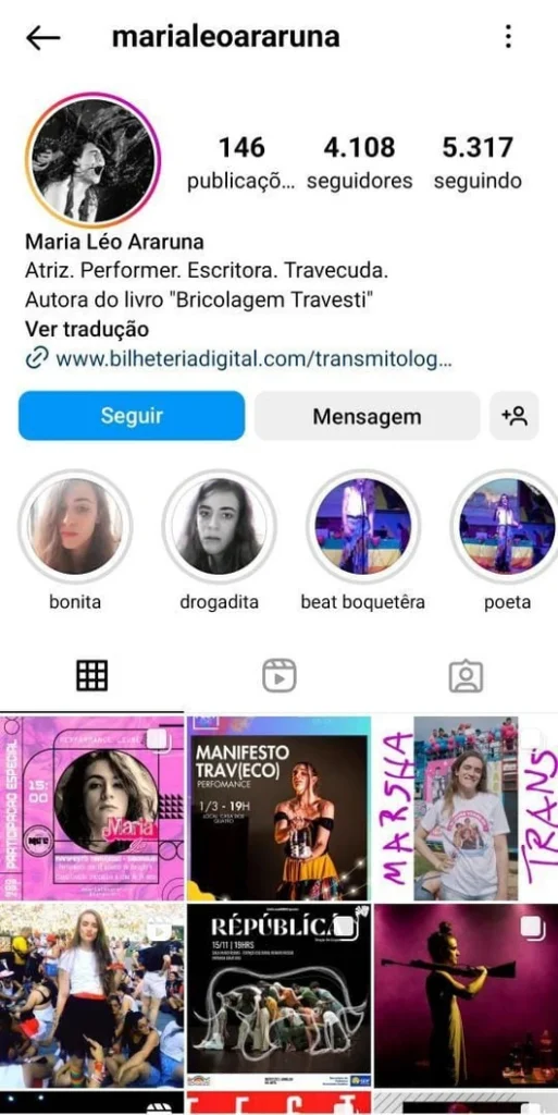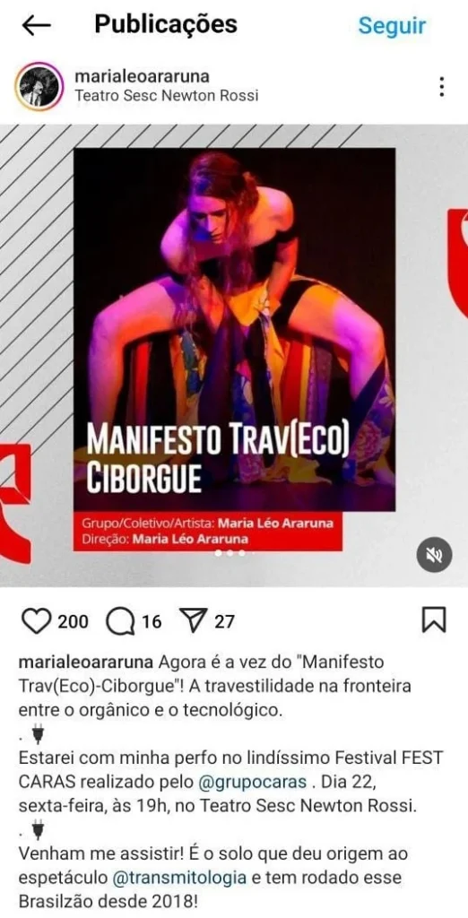 Uma primeira observação interessante é que claramente Maria Léo se identifica como “travesti” e o único pré-requisito para que alguém assim se declare, como é de conhecimento comum, é que seja um homem, já que mulher alguma pode se declarar desta forma.