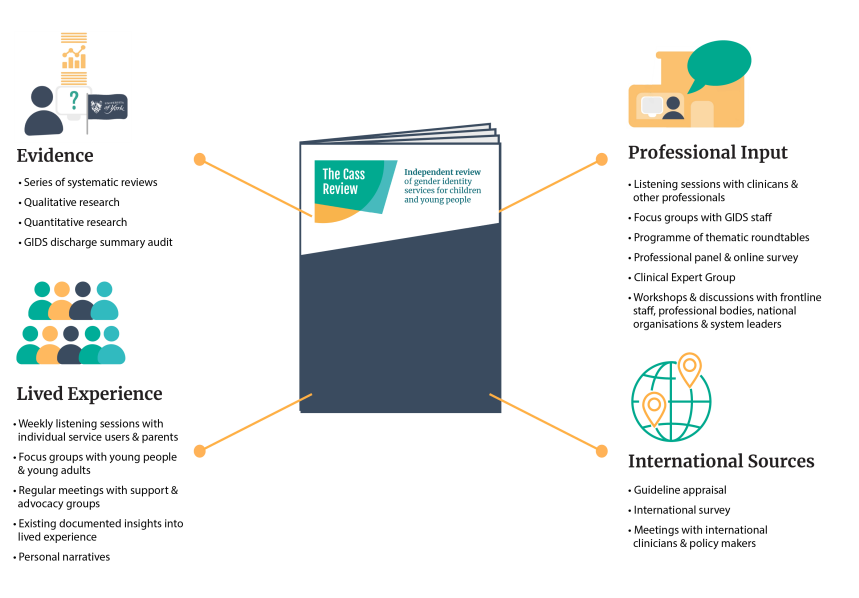A Revisão está ciente dos debates culturais e sociais mais amplos relacionados aos direitos das pessoas transgênero. Não é papel da Revisão escolher nenhuma posição sobre as crenças que sustentam esses debates. Em vez disso, esta Revisão está estritamente focada nos serviços clínicos prestados a crianças e jovens que procuram ajuda do NHS para resolver a sua angústia relacionada ao gênero.